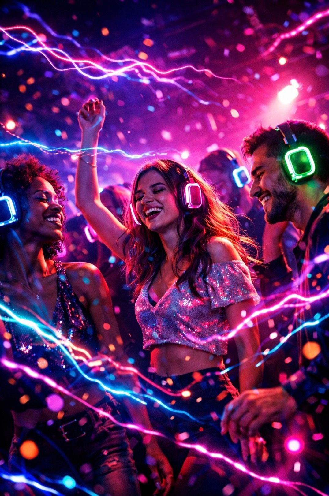 The vibrant colors of the headphones against the disco lights create a high-energy aesthetic. It’s not just a disco; it’s a performance. You can see examples of this energy on our events page. Your guests will love the novelty, and you will love the photos.