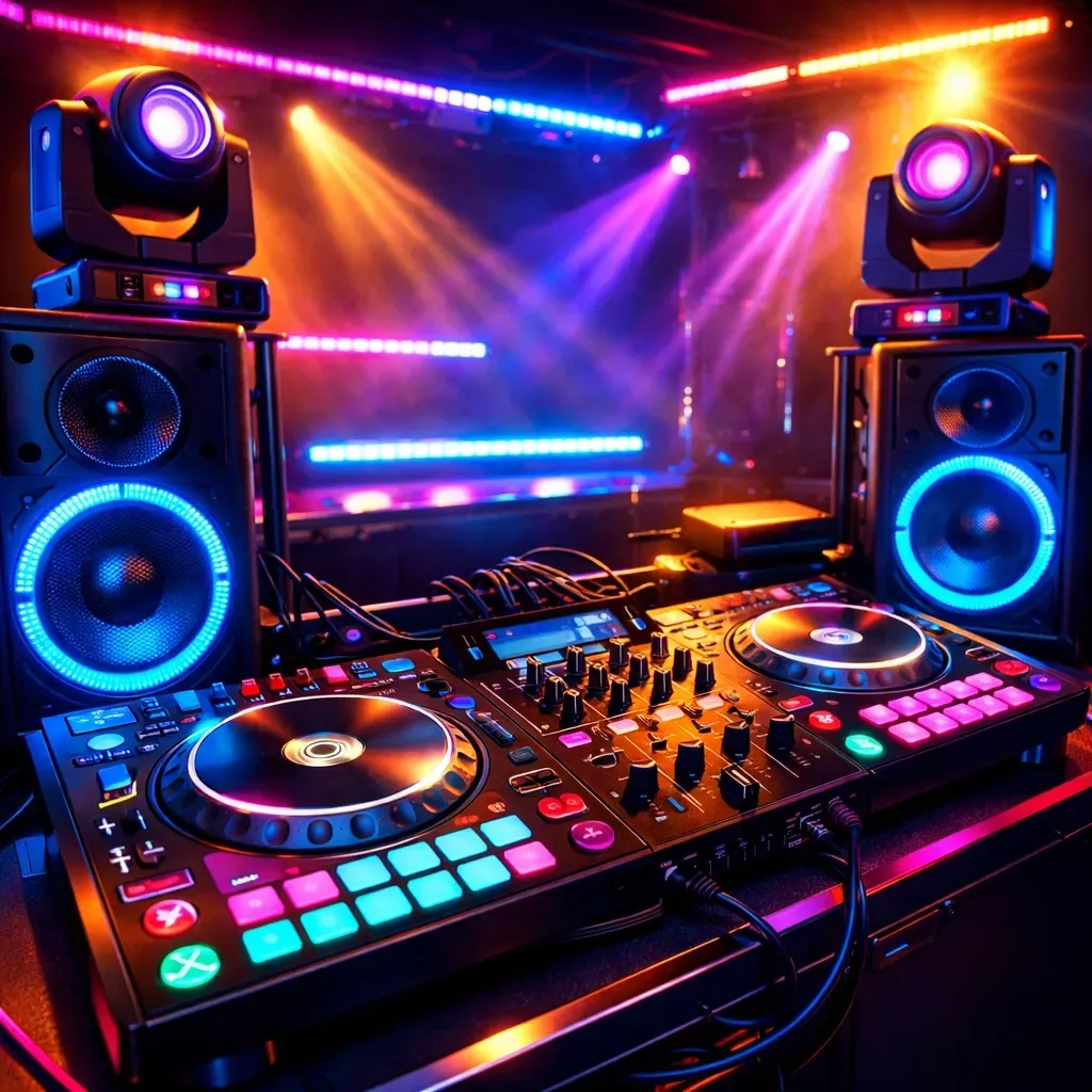 Plan for roughly 3 meters by 2 meters for the DJ booth, speakers, and lighting rig. This varies slightly depending on your package, but that's a good rule of thumb. Position the setup where it has decent sightlines of the dance floor but doesn't block key areas like the bar or entrance.